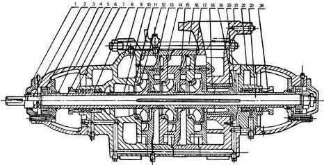 D型臥式多級離心泵主要零件有:進水段、中段、出水段、葉輪、導(dǎo)翼擋板、出水段導(dǎo)翼、軸、密封環(huán)、平衡環(huán)、軸套、尾蓋及軸承體。