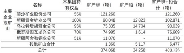 截止到2019年末,紫金礦業(yè)擁有5,725 萬噸的銅和974 萬噸的鋅(鉛),其中,銅資源量約為國內(nèi)總量的一半,鋅資源占全國的4.56%。